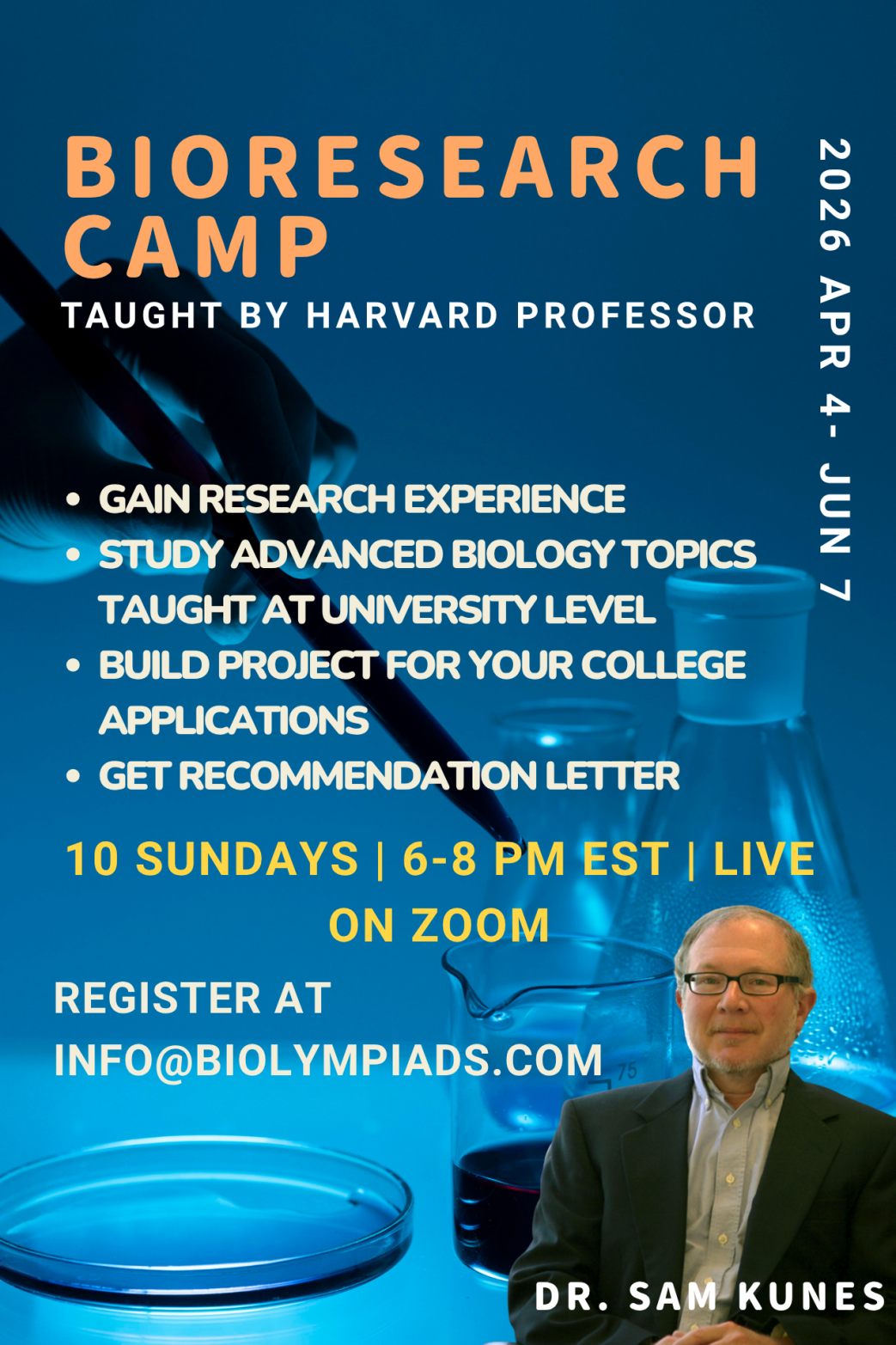 For the first time, Biolympiads.com will be running a hands-on online research camp in partnership with a Harvard professor! The Advanced BioResearch Program 2026 invites ambitious middle and high school students to explore how technology and biology evolve together to advance human health. From CRISPR and next-generation sequencing to synthetic biology and advanced microscopy — you’ll learn how each innovation reveals new layers of how life works. In this program, you won’t just memorize concepts—you’ll use them. Program Goals …